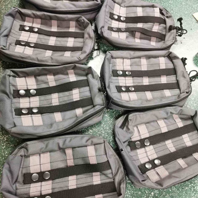 First Aid kits handmade by locals: Soldiers and civilian fights carry these filled with tools to assist others who are injured